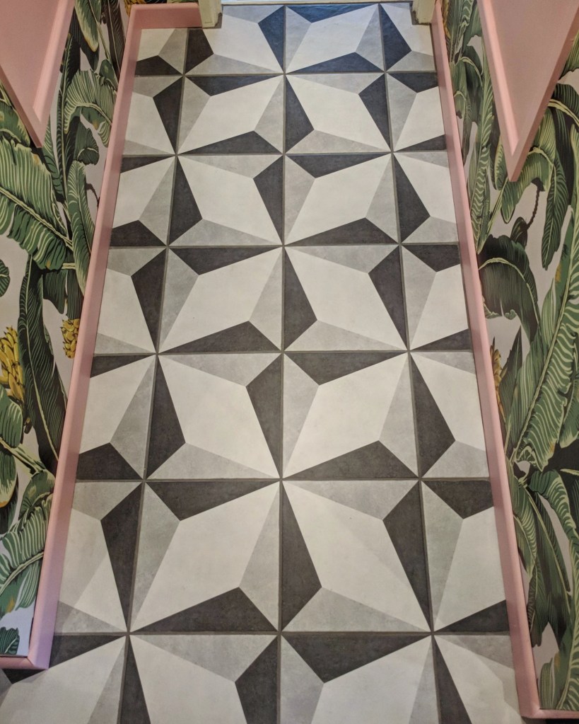 The first decision I had to make was which pattern to create with the Henry tile, as they can be laid in different rotations to create either a star or box illusion pattern. I went with the star pattern which definitely suited our floor space best and created a kind of path leading you up to the bath.